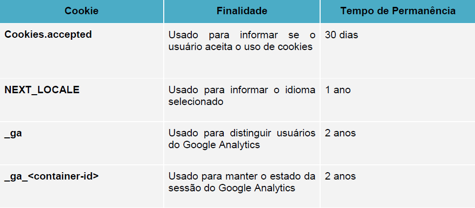 A Hidrolight informa que também irá tratar dados fornecidos indiretamente pelos usuários do site, por meio de cookies enviados ao seu navegador, que não possibilitam a identificação do usuário e são necessários para algumas finalidades, quais sejam: