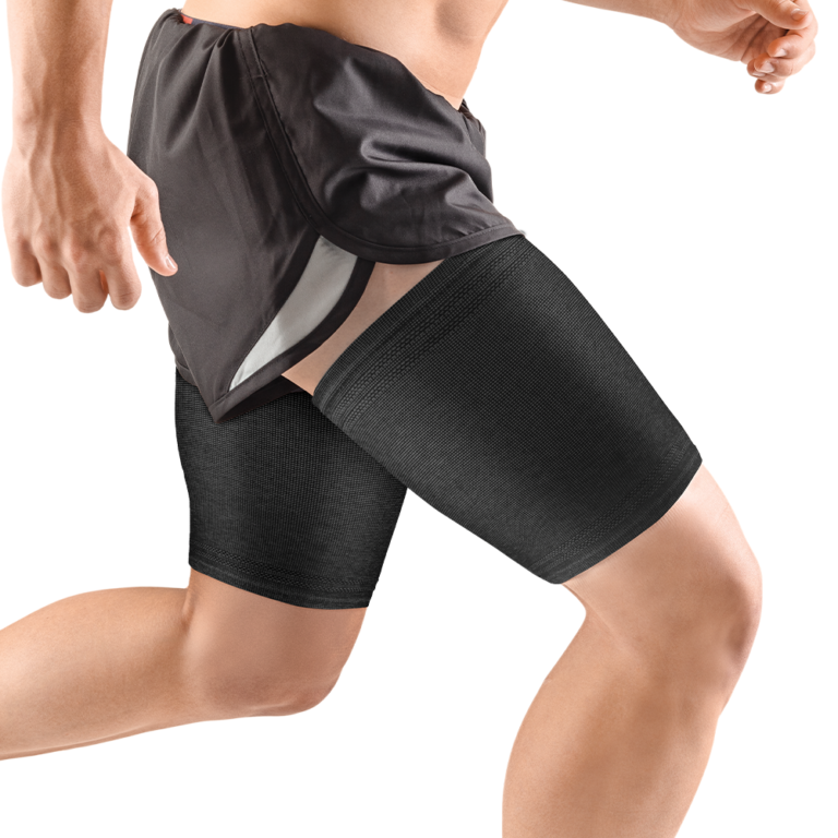 Vestir o produto através do orifício superior, puxando-o até que fique na posição desejada e confortável na coxa.