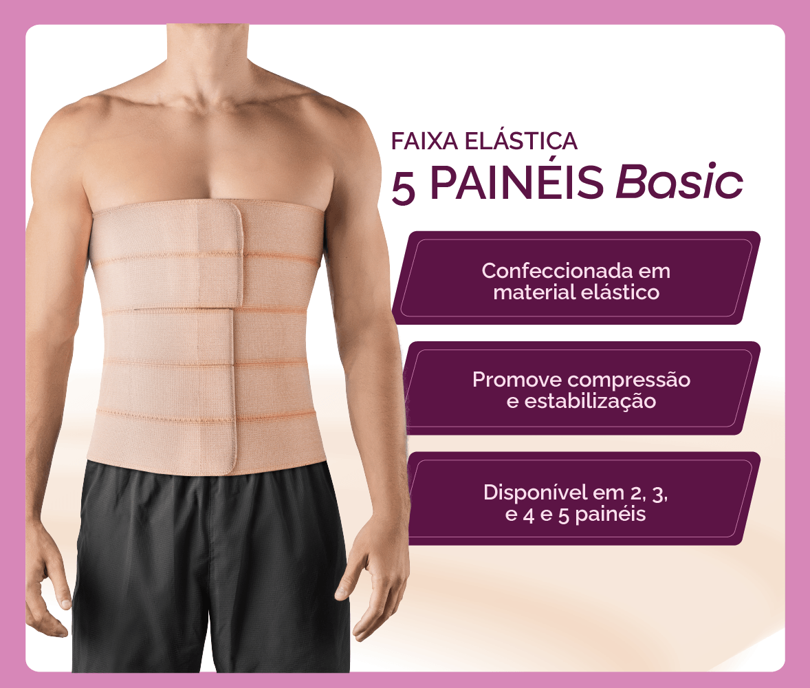Posicione a Faixa Elástica de Painéis na região lombar de forma que as abas fechem em torno da região abdominal. Ajuste conforme a necessidade através do fecho aderente.