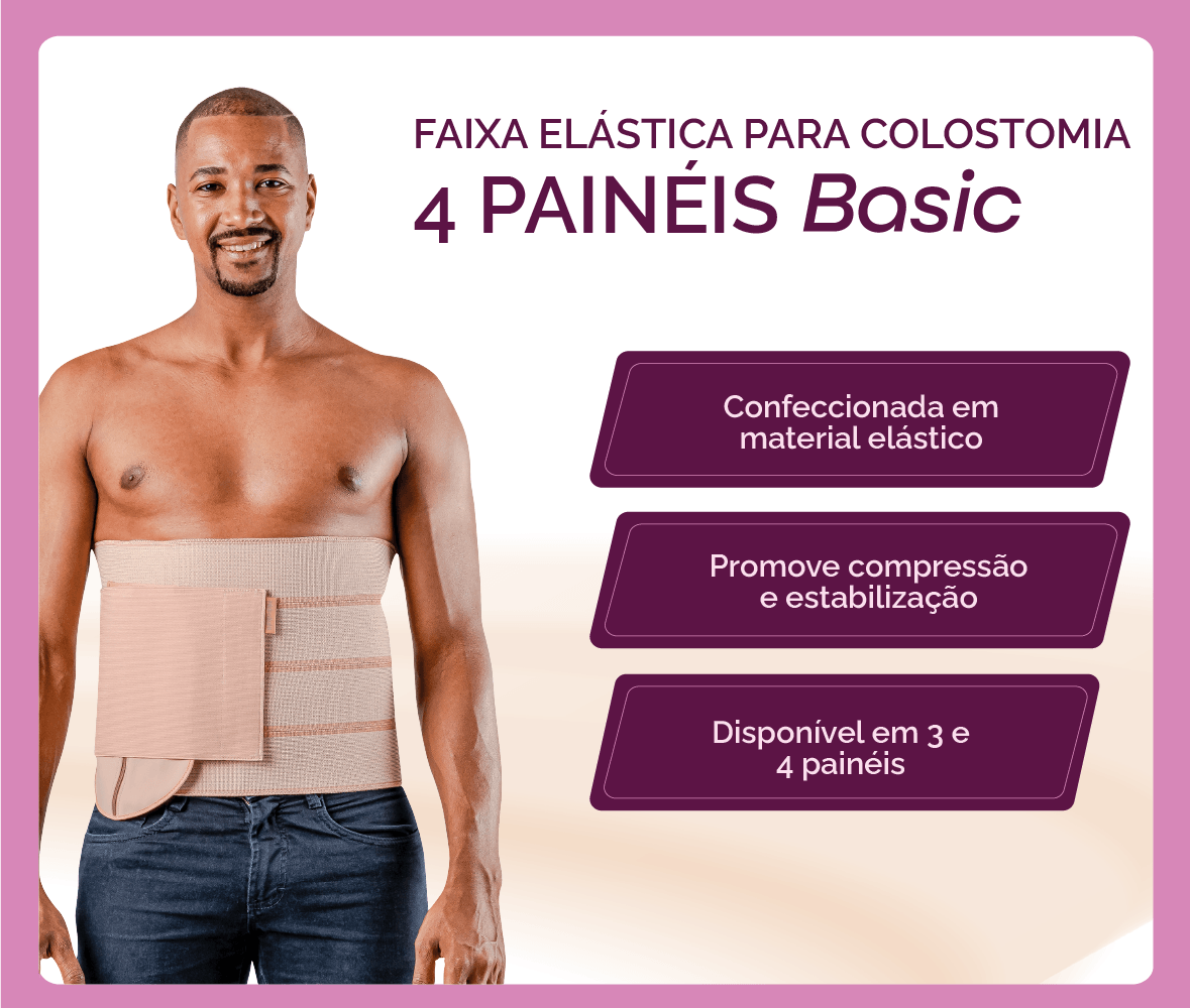 É indicada para dar suporte à bolsa de ostomia ao mesmo tempo que comprime e estabiliza a região abdominal, proporcionando maior conforto, proteção e segurança para pessoas ostomizadas.